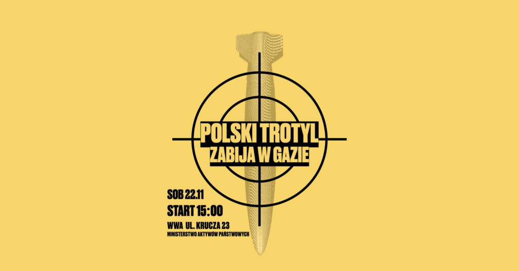 „Bez trotylu (TNT) wyprodukowanego w Polsce niemożliwa byłaby bezprecedensowa skala i intensywność bombardowań z powietrza, które pochłonęły życie dziesiątek tysięcy Palestyńczyków i zniszczyły warunki życia w Strefie Gazy” – raport People’s Embargo for Palestine, Palestinian Youth Movement, Shadow World Investigations i Movement Research Unit.raportu People’s Embargo for Palestine, Palestinian Youth Movement, Shadow World Investigations i Movement Research Unit.
